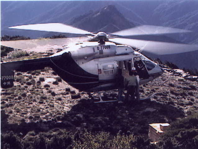北峰的東側下方約60米處,有一塊小型停機坪,因氣候及地形不佳 直昇機不能久留,工作人員需要快速搬運貨物。從實際所累積的飛 行經驗,目前在民營航空中,僅有中興航空在北峰有吊掛及載運 的服務。