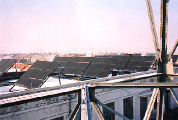 大陸黑龍江省綏化通訊站,屋頂上的非晶太陽能方陣。